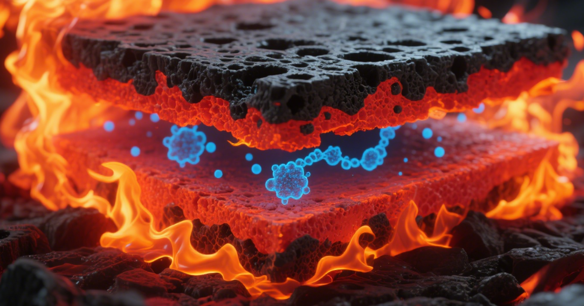 第二步:给材料裹上 “膨胀炭层铠甲”。当材料遇到高温时,酸源、碳源、气源会同步发力,在材料表面形成一层致密的多孔膨胀炭层。这层炭层就像一道隔热又隔氧的 “城墙”:既挡住外部的热量往材料内部钻,又不让氧气接触到内层的可燃物,从里到外阻止火焰蔓延。